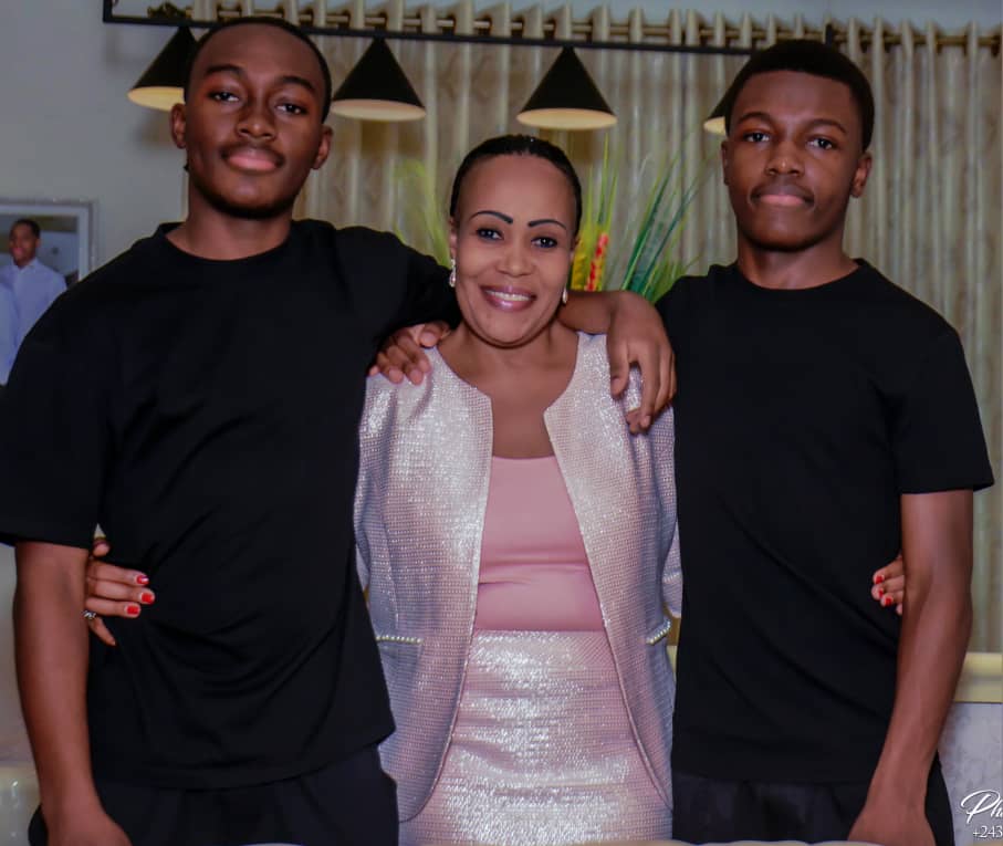 Marie-Ange Mushobekwa avec ses fils Claudien Likulia Lifoma (18 ans) et Christopher Likulia Mushobekwa (17 ans)