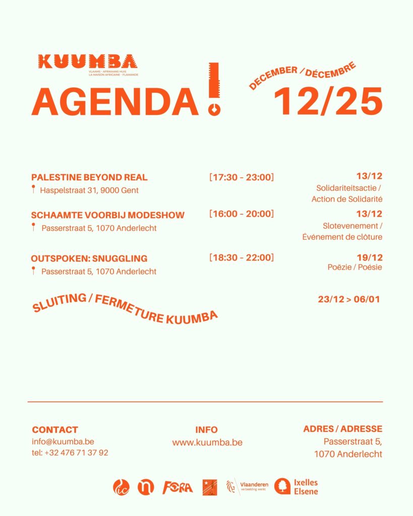 Dit jaar kwam ook het pijnlijke nieuws binnen dat Kuumba geen structurele subsidies meer zal ontvangen van de Vlaamse regering. Als team, met onze achterban, hebben we rouw en teleurstelling omgezet in nieuwe kracht. Kuumba blijft koppig bestaan, in welke vorm dan ook.