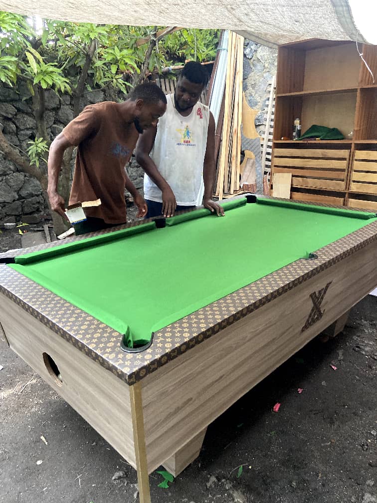 GOMA – À Goma, dans la province du Nord-Kivu, deux jeunes menuisiers talentueux, Yanick Kakozi et Nasib Emedy, se démarquent en fabriquant localement des tables de billard, une initiative inédite dans la ville.